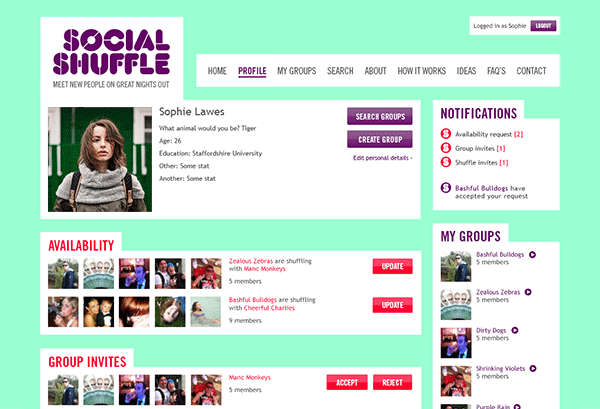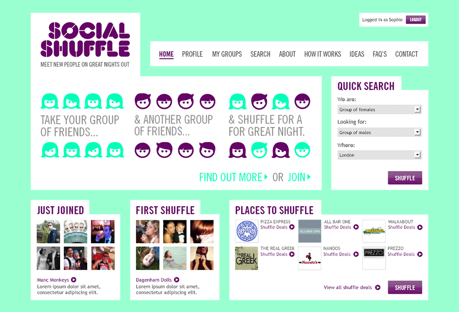 Social Shuffle is a new online platform that enables groups of friends to quickly and easily arrange great nights out with other groups of friends.