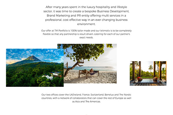 TM Portfolio provides brand marketing and PR services for luxury hospitality and lifestyle clients.