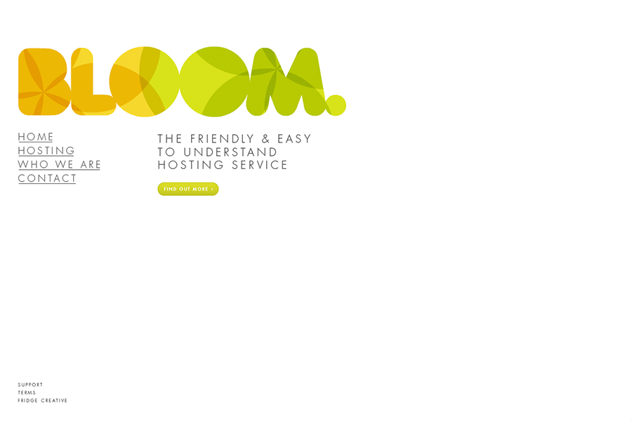 Bloom are a website hosting service offering a friendly and easy to understand service, stripped of all the technical jargon. We produced a friendly logo to reflect this using a rounded typeface made from abstract blooming flowers.