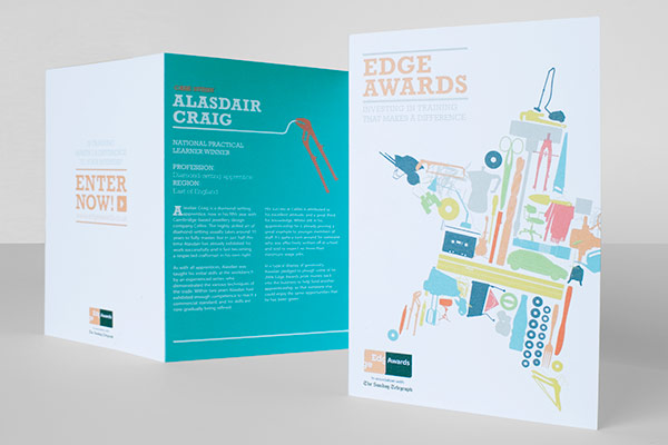 The Edge Awards ran for three years and gave away more than £1m to reward great practical learning in the workplace. We designed all the online and print items in partnership with Public Zone.