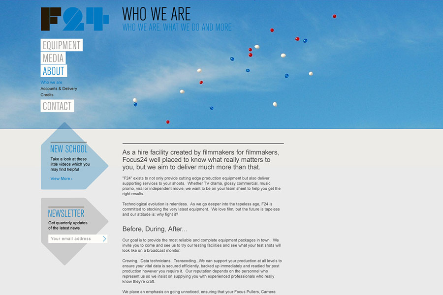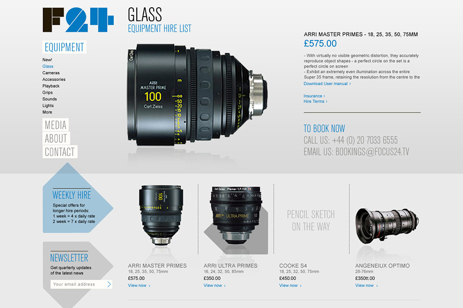 Focus24 are a hire facility created by filmmakers for filmmakers. Not only providing cutting edge production equipment, but also delivering supporting services to film and television shoots.