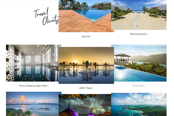 The site makes use of stunning photography from their clients. Large full bleed header imagery and secondary supporting images are playfully placed around the page.